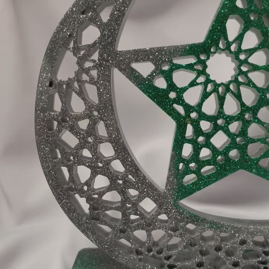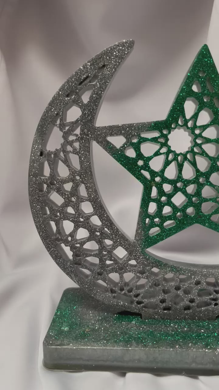 Our resin moon and mosque décor pieces are a beautiful way to bring warmth and spirituality into your home during Ramadan and beyond. Each design is handcrafted with layered resin, shimmering pigments, and delicate details that capture the serene glow of the crescent moon and the elegance of the mosque silhouette. These pieces make stunning centrepieces for your Ramadan display, adding a modern yet meaningful touch to your décor. Whether placed on a mantel, shelf, or prayer corner, they create a peaceful atmosphere and serve as a timeless reminder of reflection, faith, and celebration.
